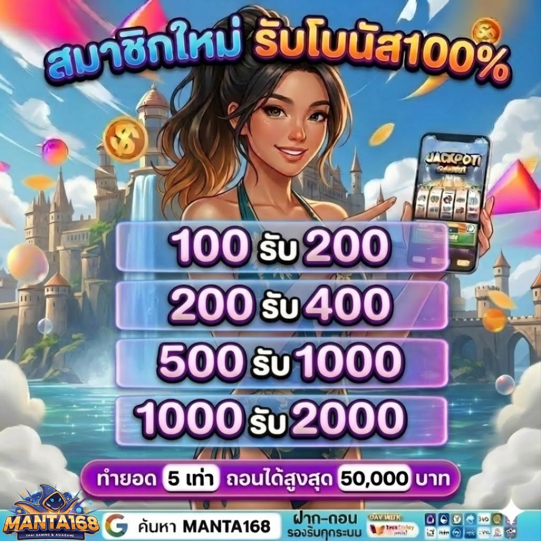 ถ้าคุณกำลังมองหาเว็บพนันที่ครบวงจรและน่าเชื่อถือ MANTA168 คือตัวเลือกที่คุณไม่ควรพลาด! ที่นี่ไม่เพียงแต่มีเกมให้เลือกเล่นมากมาย แต่ยังมีเกมสล็อตยอดนิยมที่คัดสรรมาให้คุณได้สนุกกันแบบจุใจ เริ่มต้นด้วยเกมสล็อตคลาสสิกอย่าง “Starburst” ที่มาพร้อมกราฟิกสวยงามและฟีเจอร์พิเศษที่ทำให้การเล่นสนุกยิ่งขึ้น หรือจะเป็น “Book of Dead” ที่พาคุณไปผจญภัยในโลกโบราณพร้อมโอกาสในการทำเงินก้อนโต นอกจากนี้ยังมี “Gonzo’s Quest” ที่มาพร้อมกับระบบการเล่นแบบใหม่และโอกาสในการชนะรางวัลใหญ่แบบต่อเนื่อง